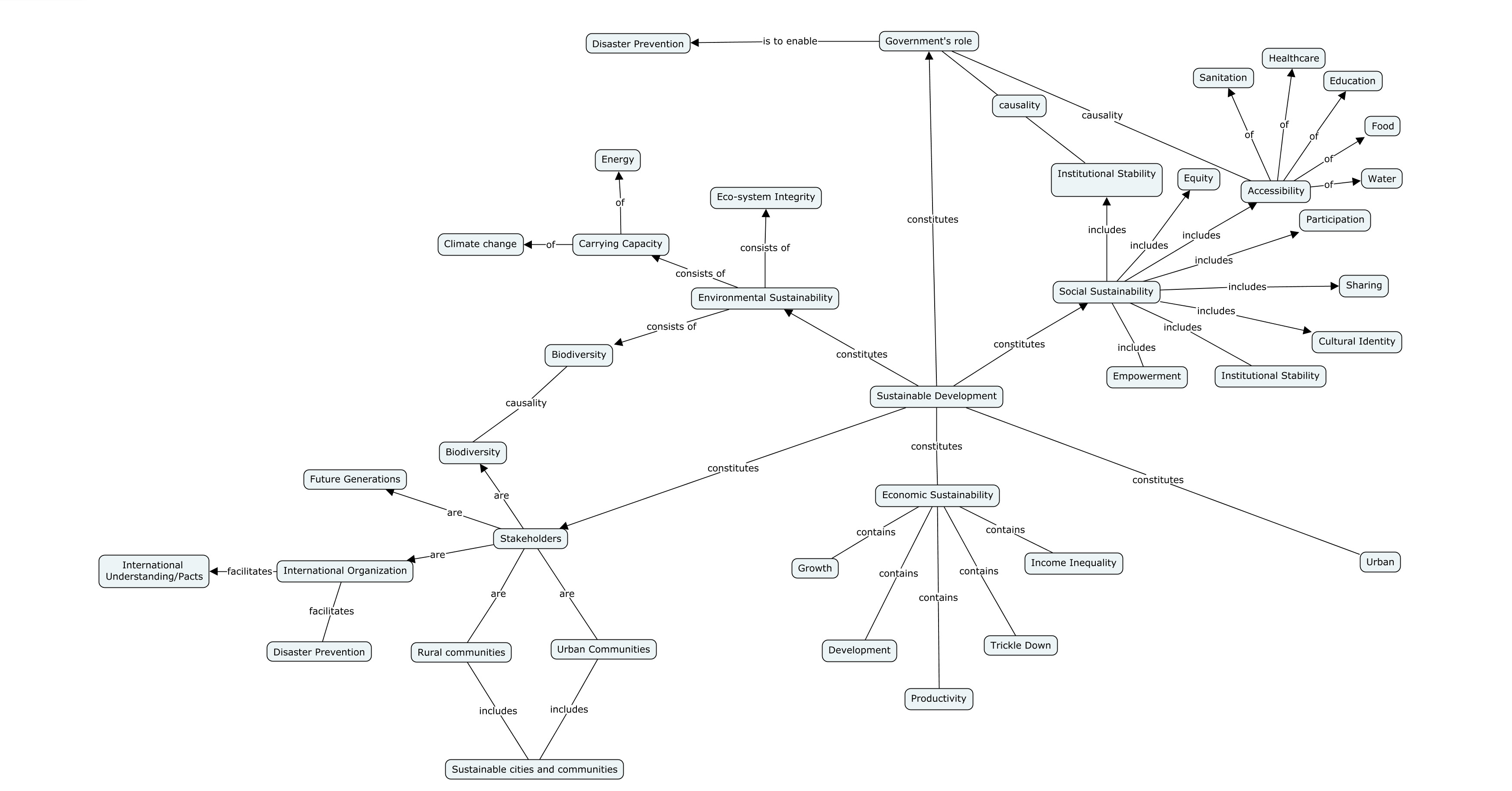 An important aspect of sustainability is Sustainable Development. The multiple facets of sustainable development found post research are illustrated in the map below, which is a non-exhaustive representation of the complex problem .